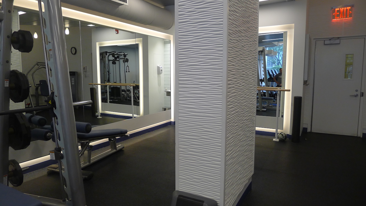 This project involved the reimaging on an existing exercise room at a co-op high rise in the east 58th area of Manhattan. The client wished for a neutral and cool tone look that would try to straddle the line between aggressive modern lines and timeless tones, keeping the design fresh and relevant for an extended period.