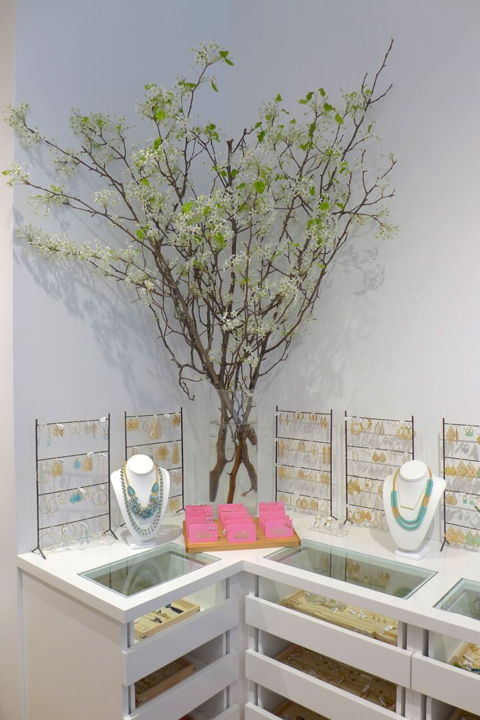 The primary issues with the project involved maximizing the wall area with an easy to replicate panel system, emphasizing the lateral site lines in such a narrow and long space, and the custom design of such millwork items such as the corner jewelry display case and front cash wrap.