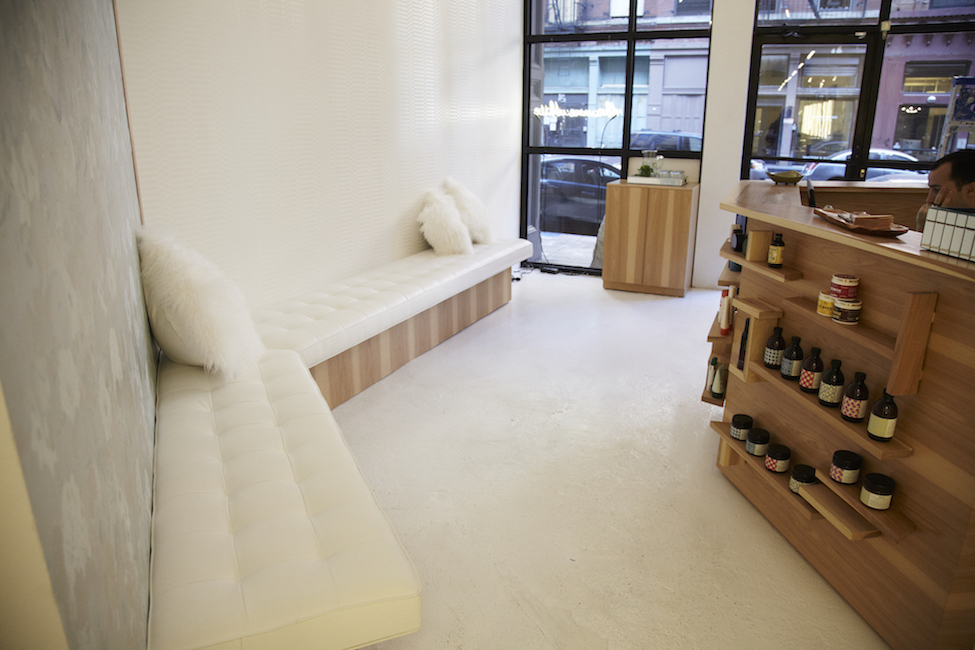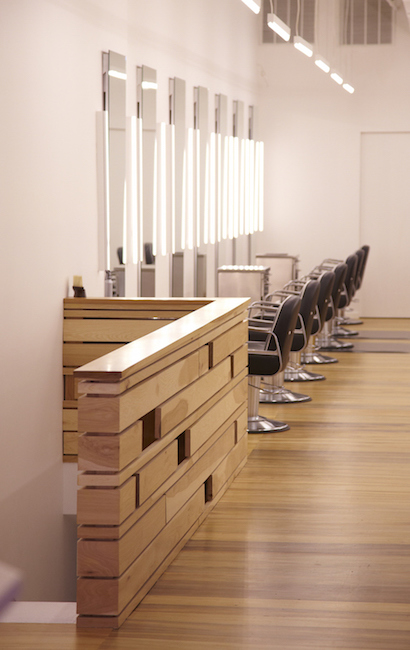 This project entailed the renovation of commercial space at the first floor and cellar of a landmark district loft building in Tribeca. The client. Rheanne White, wanted to launch her personally branded flagship hair styling salon. The client supported a refined, limited finish palette that drew inspiration from the history of Tribeca, Asian minimalism, the client’s name of White, and the existing rich vintage wood floors.