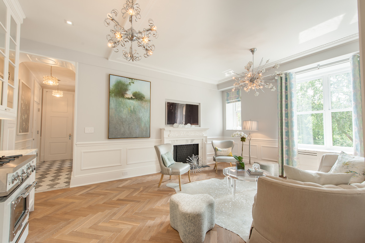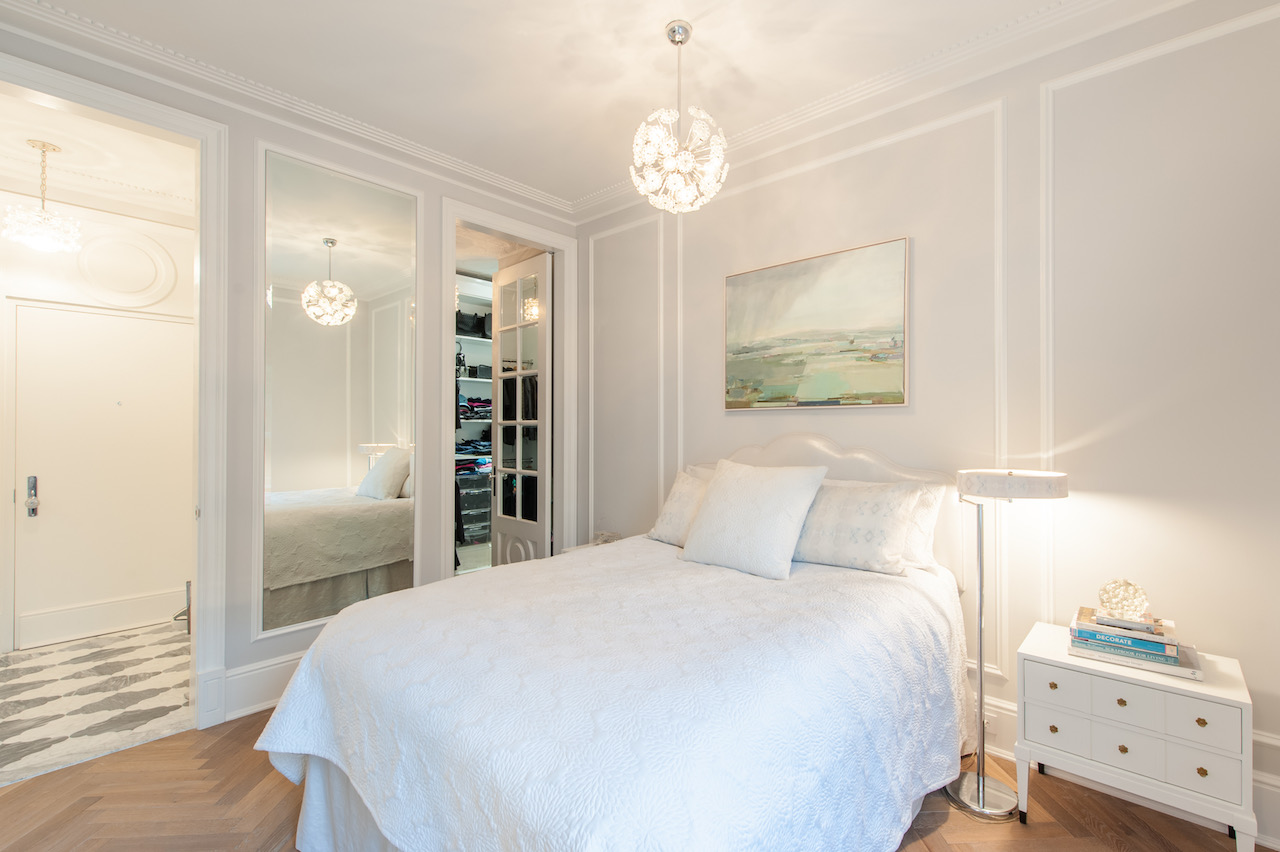 This project involved the combination of two small apartments into one graciously open and spacious home. With glazing between the guest bedroom and the living room, the owner is given an generous guest room that can double as a working home office.